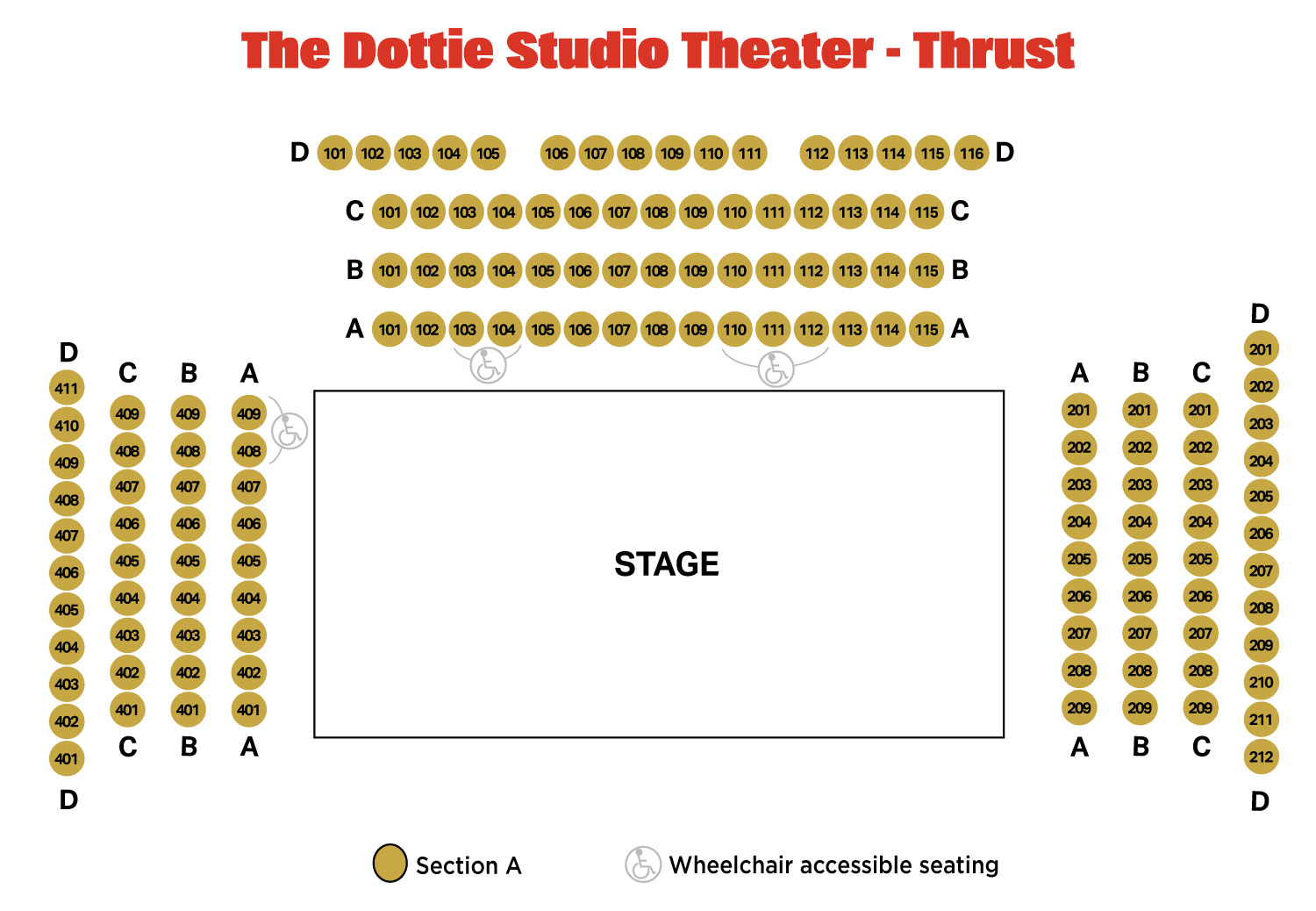 Individuals purchasing a ticket for an accessible seat may purchase seats for their companions. Please contact the Box Office for further seating assistance.